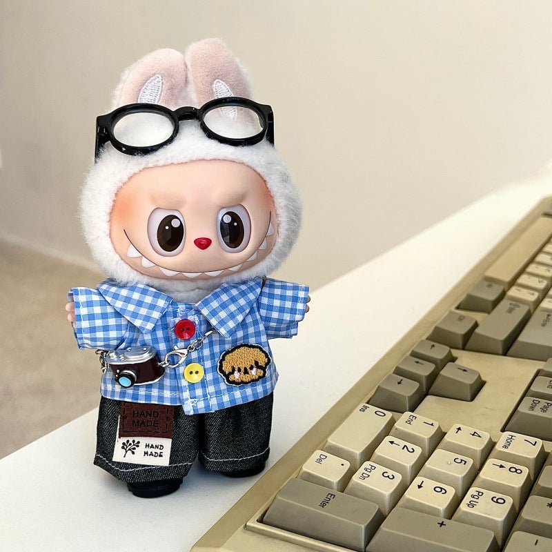 Turn your BUBU into the coolest little photographer in town! 🎞️ The Retro Photographer Outfit features a vintage-inspired blue checkered shirt, handmade denim pants, and a tiny camera accessory — perfect for snapping imaginary moments in style. 😎