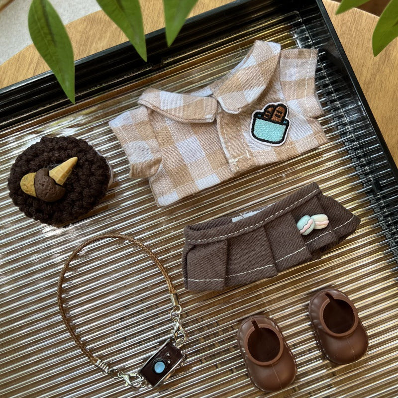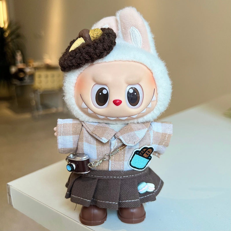 Give your BUBU a cozy vintage charm with our Choco Retro Outfit! This adorable set features a chocolate beret decorated with a donut accent, a soft plaid shirt, a pleated skirt with playful patches, a tiny crossbody camera, and matching brown shoes. Warm, stylish, and irresistibly cute — perfect for collectors who love classic retro vibes.