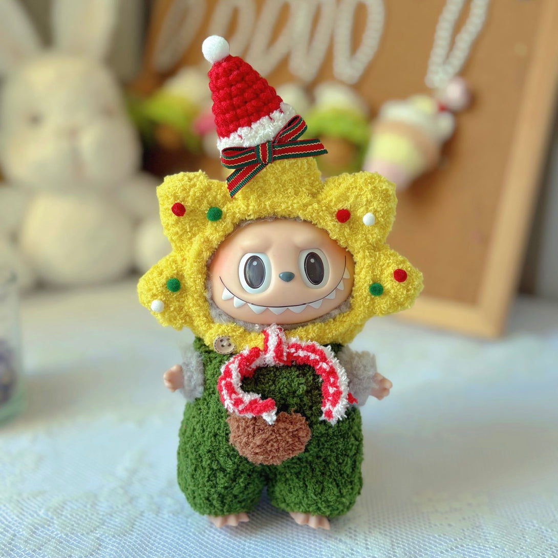Make your BUBU shine bright this holiday season with the Christmas Wishing Star Outfit! 🌟 Hand-crocheted with love, this adorable outfit features a cheerful yellow star-shaped hood decorated with colorful “ornaments” and a tiny red Santa hat topped with a pom-pom and festive ribbon.