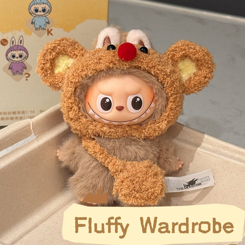 Snuggle season just got a lot cuter! These fuzzy animal hoodie sets wrap your mini BUBU in warm, whimsical charm — perfect for cozy days and adorable photo ops. Whether it's the sweet blushing reindeer with a pink heart bib or the playful teddy bear with a bright red nose, each outfit transforms your plush into a huggable little forest friend.