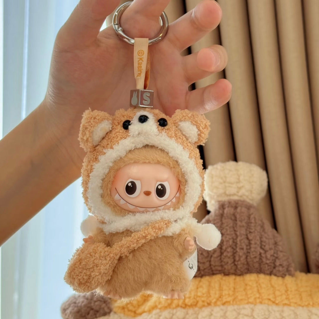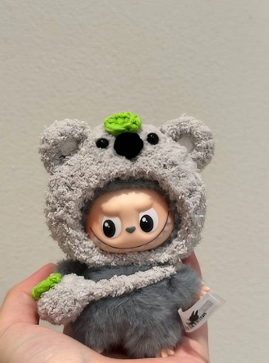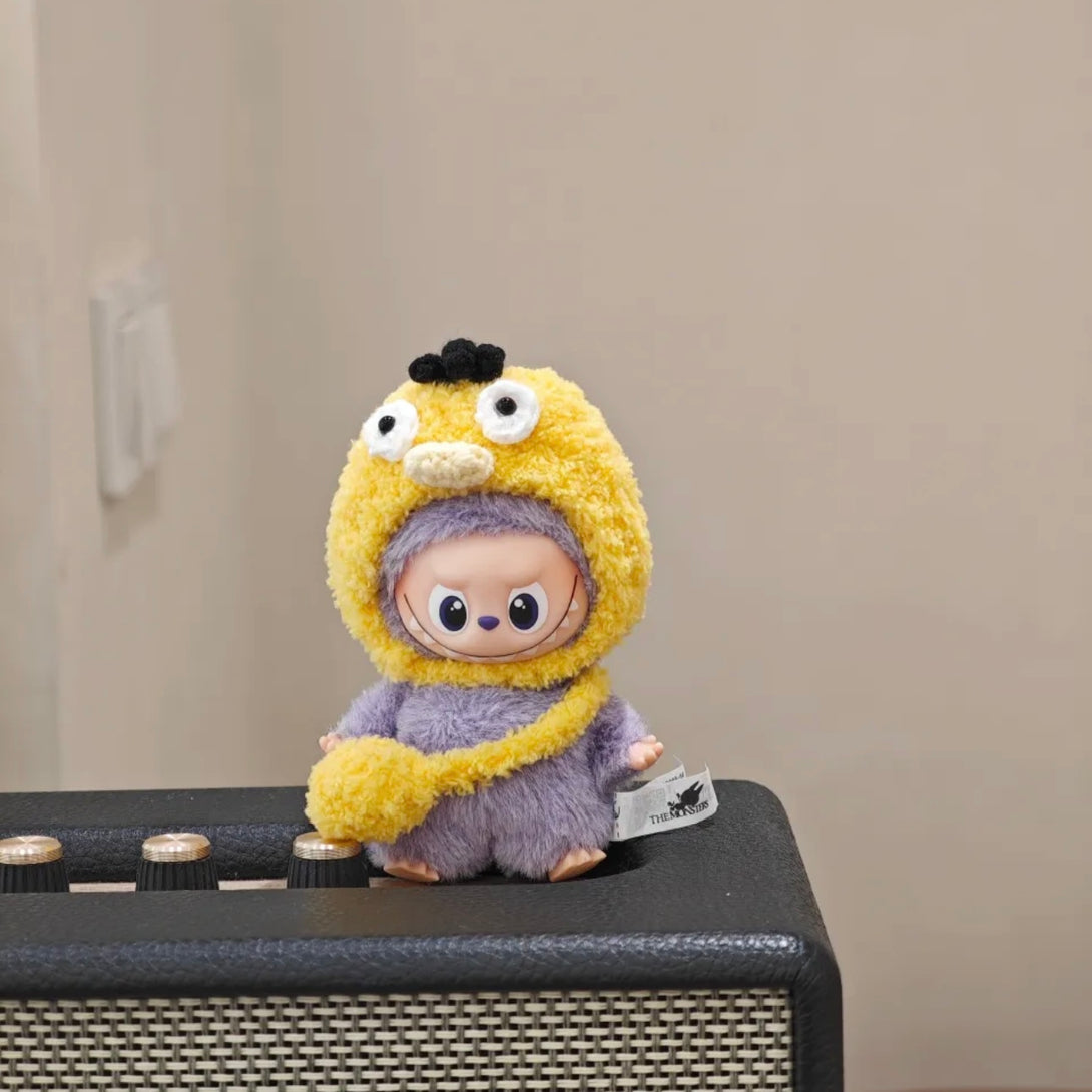 This handmade fuzzy hood set dresses your mini BUBU in whimsical characters — from party bears to fruity critters — each outfit crafted with ultra-soft plush, playful ears or antennas, and an adorable mini backpack to complete the look.