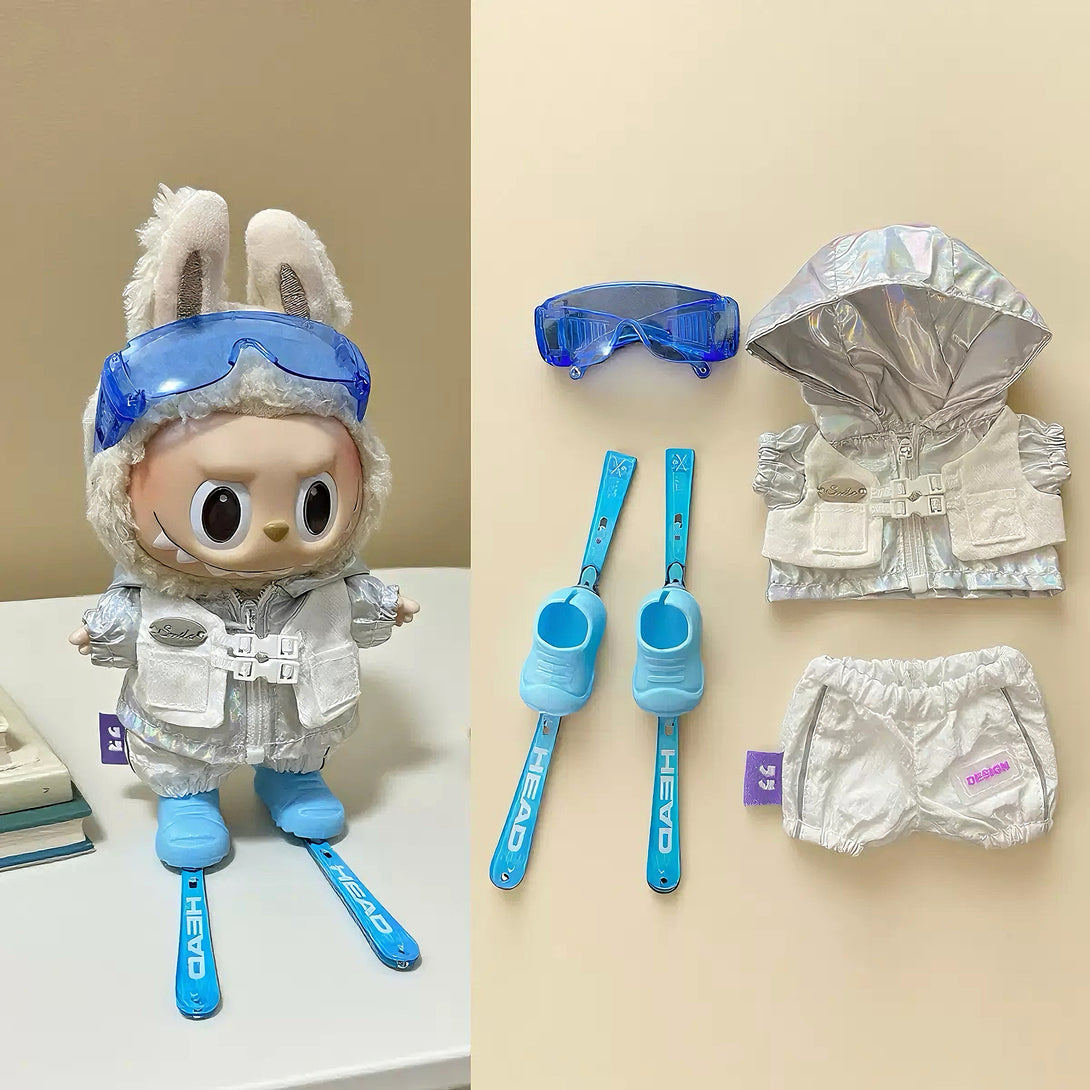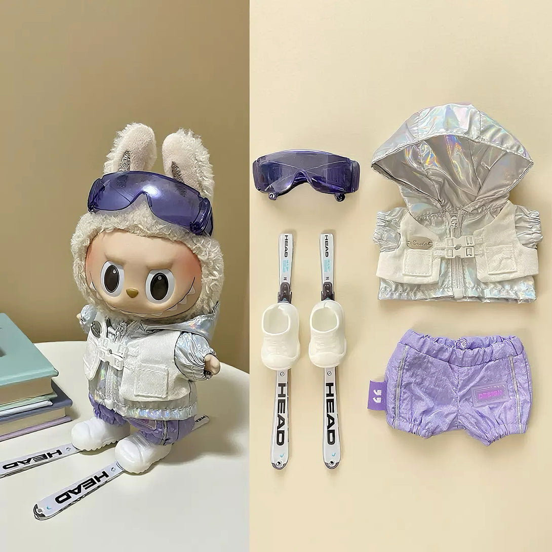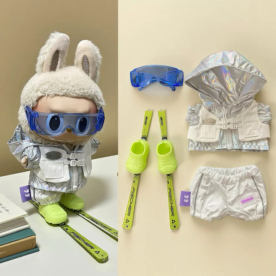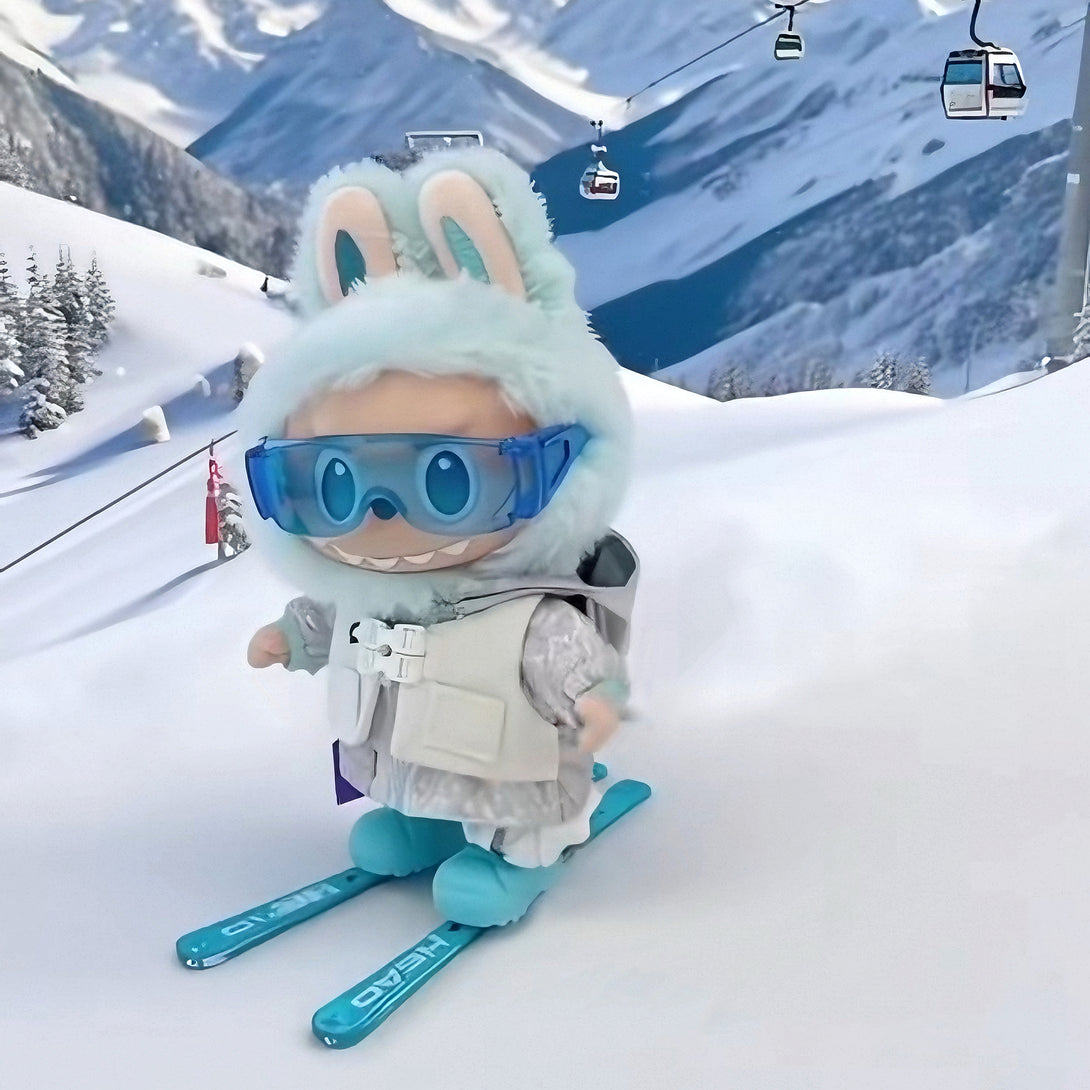 Hit the slopes in style with this alpine-ready ski outfit for your BUBU! Designed with icy metallic tones and futuristic vibes, this set comes with a reflective jacket, sporty vest, elastic shorts, protective goggles, and mini skis that snap into matching clogs. Whether you're posing on a snowy peak or just chilling on a bookshelf, this look brings serious après-ski attitude.