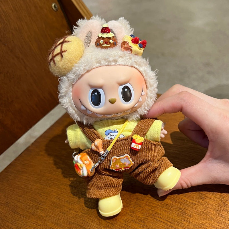 Turn your BUBU into the cutest foodie ever with our Sweet Treats Outfit Set! This playful look is packed with dessert-inspired details, featuring a fluffy headdress with mini cakes, bread, and pastries, a cheerful yellow top, cozy brown overalls, and matching shoes. To complete the look, a tiny crossbody snack bag adds extra charm — because every foodie BUBU needs snacks on the go!🍰🥐🍟